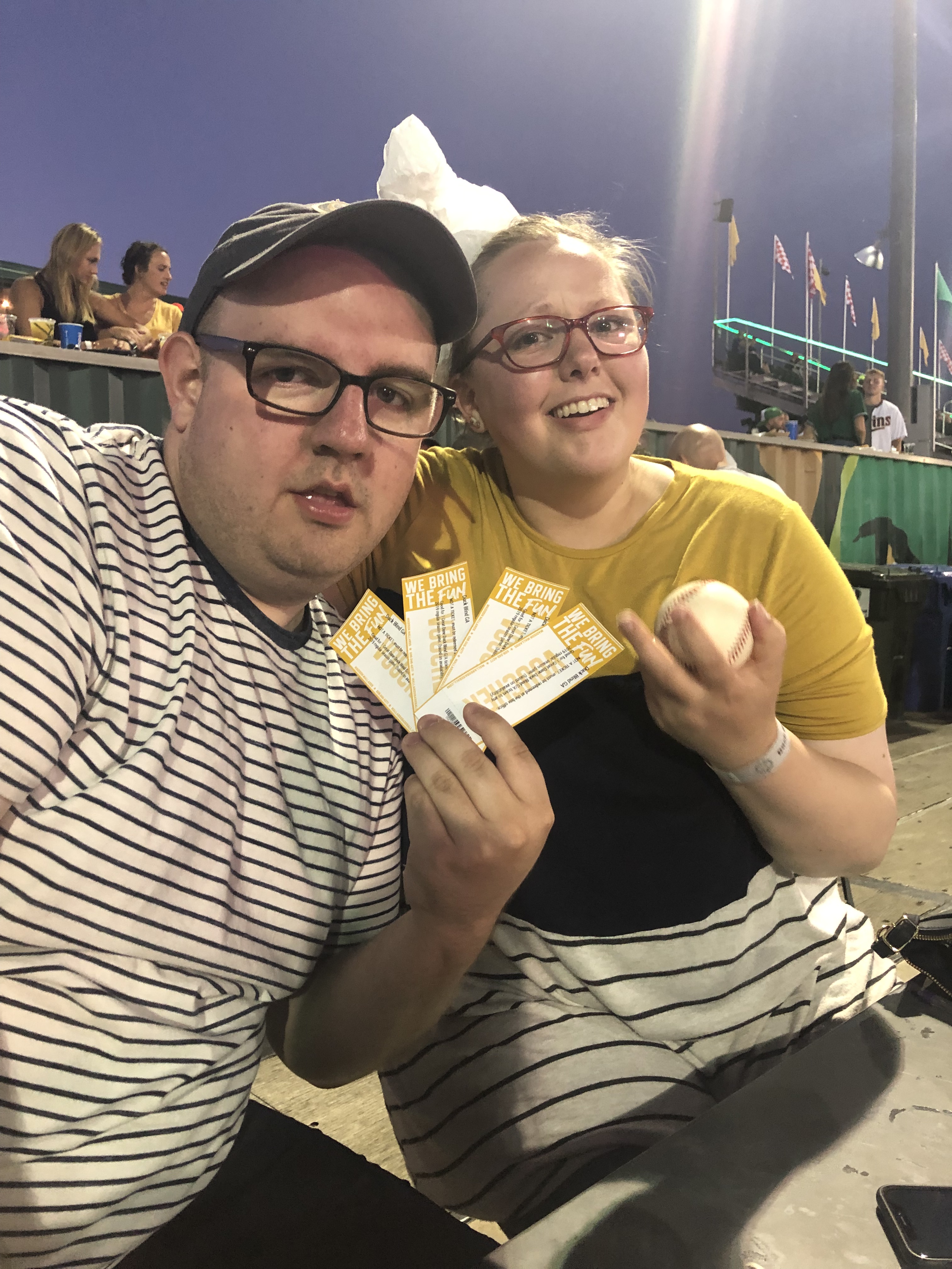 Just a “heads up” … it may be necessary to wear a helmet if you decide to attend a Mallards game. It just so happened that one of our friends was hit in the head with a foul ball. Though she ended up with a walloping goose egg on her noggin, she assured everyone she was okay by toasting the crowd with her beer. She ended up getting a few free tickets out of the ordeal, so maybe it was worth it? I guess you’d have to ask her. If anything, I was disappointed we didn’t try to get more out of the situation. Maybe some free hats? A meet and greet situation? T shirts? I guess there’s always next time…
